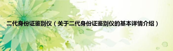 本文关于二代身份证鉴别仪的基本详情介绍就讲解完毕,希望对大家有所帮助。