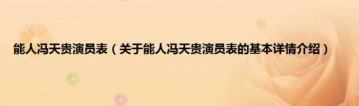 能人冯天贵演员表(关于能人冯天贵演员表的基本详情介绍)