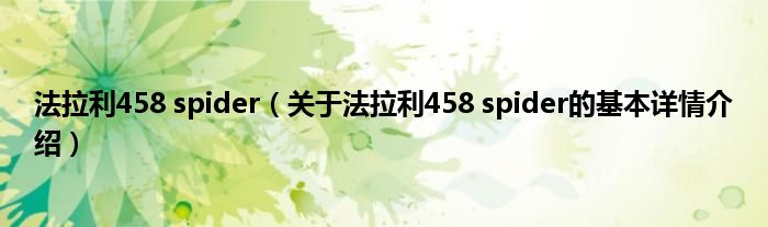 本文关于法拉利458 spider的基本详情介绍就讲解完毕,希望对大家有所帮助。