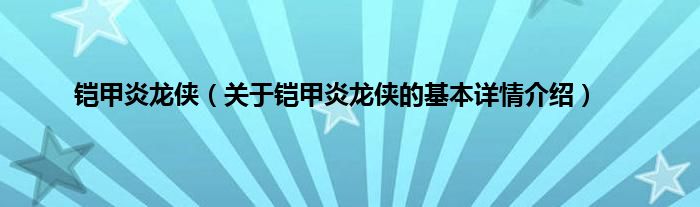 本文关于铠甲炎龙侠的基本详情介绍就讲解完毕,希望对大家有所帮助。