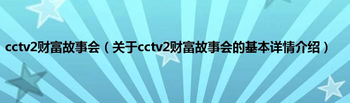 本文关于cctv2财富故事会的基本详情介绍就讲解完毕,希望对大家有所帮助。