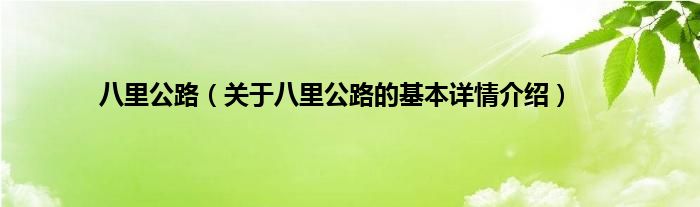 本文关于八里公路的基本详情介绍就讲解完毕,希望对大家有所帮助。