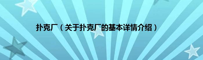 本文关于扑克厂的基本详情介绍就讲解完毕,希望对大家有所帮助。