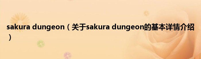 sakura dungeon(关于sakura dungeon的基本详情介绍)