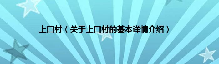 本文关于上口村的基本详情介绍就讲解完毕,希望对大家有所帮助。