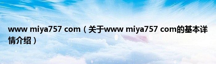 本文关于www miya757 com的基本详情介绍就讲解完毕,希望对大家有所帮助。