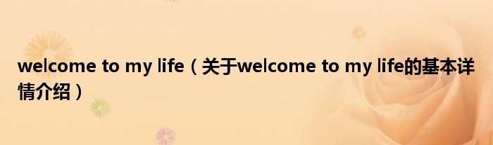 本文关于welcome to my life的基本详情介绍就讲解完毕,希望对大家有所帮助。