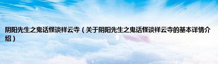 本文关于阴阳先生之鬼话怪谈祥云寺的基本详情介绍就讲解完毕,希望对大家有所帮助。