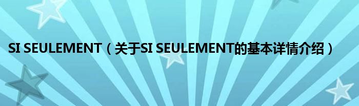 本文关于SI SEULEMENT的基本详情介绍就讲解完毕,希望对大家有所帮助。