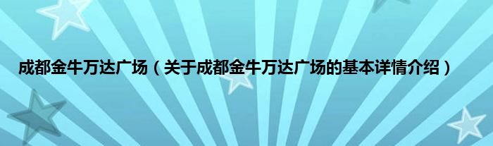 本文关于成都金牛万达广场的基本详情介绍就讲解完毕,希望对大家有所帮助。