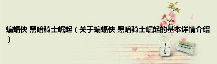 本文关于蝙蝠侠 黑暗骑士崛起的基本详情介绍就讲解完毕,希望对大家有所帮助。