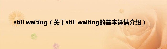 本文关于still waiting的基本详情介绍就讲解完毕,希望对大家有所帮助。