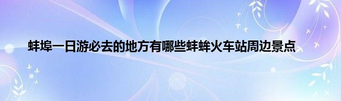 大家好,小问来为大家解答以上问题。蚌埠一日游必去的地方有哪些蚌蛑火车站周边景点这个很多人还不知道,现在让我们一起来看看吧!