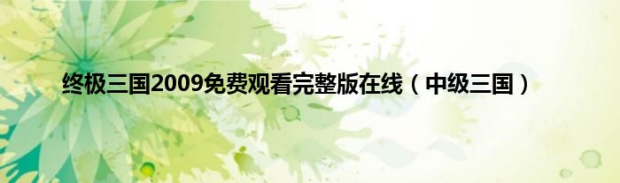 终极三国2009免费观看完整版在线(中级三国)