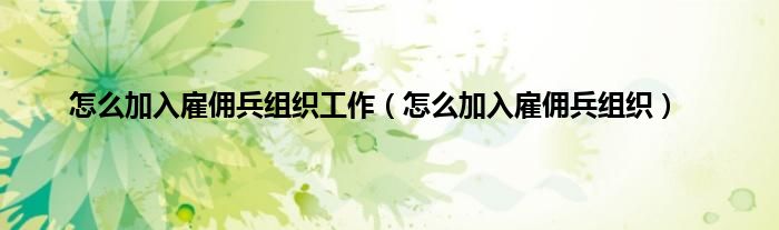 以上就是【怎么加入雇佣兵组织工作,怎么加入雇佣兵组织】相关内容。