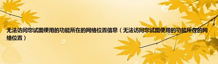 大家好,小问来为大家解答以上问题。无法访问您试图使用的功能所在的网络位置信息,无法访问您试图使用的功能所在的网络位置这个很多人还不知道,现在让我们一起来看看吧!