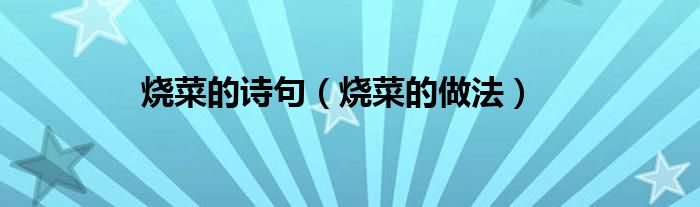 大家好,小问来为大家解答以上问题。烧菜的诗句,烧菜的做法这个很多人还不知道,现在让我们一起来看看吧!