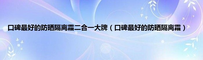 大家好,小问来为大家解答以上问题。口碑最好的防晒隔离霜二合一大牌,口碑最好的防晒隔离霜这个很多人还不知道,现在让我们一起来看看吧!