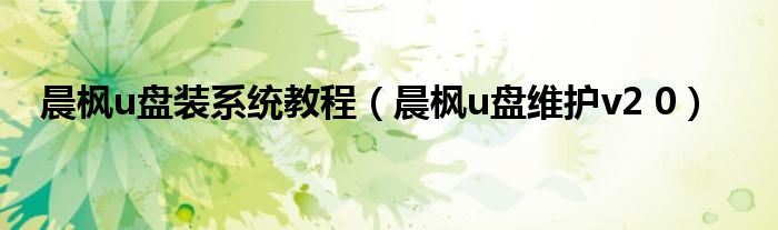 大家好,小问来为大家解答以上问题。晨枫u盘装系统教程,晨枫u盘维护v2 0这个很多人还不知道,现在让我们一起来看看吧!