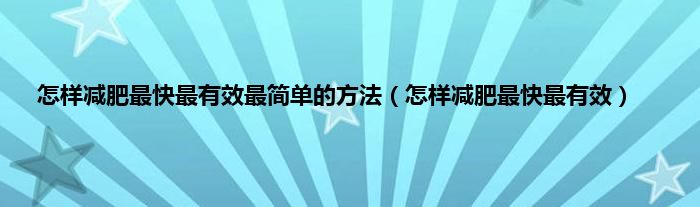 以上就是【怎样减肥最快最有效最简单的方法,怎样减肥最快最有效】相关内容。