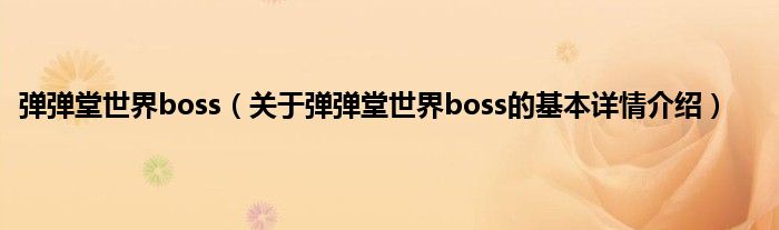 本文关于弹弹堂世界boss的基本详情介绍就讲解完毕,希望对大家有所帮助。