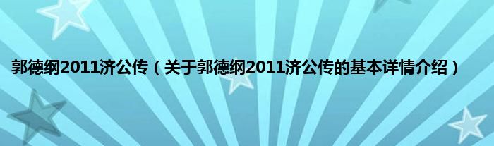 本文关于郭德纲2011济公传的基本详情介绍就讲解完毕,希望对大家有所帮助。