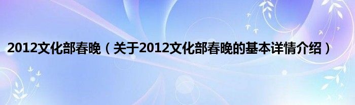 本文关于2012文化部春晚的基本详情介绍就讲解完毕,希望对大家有所帮助。