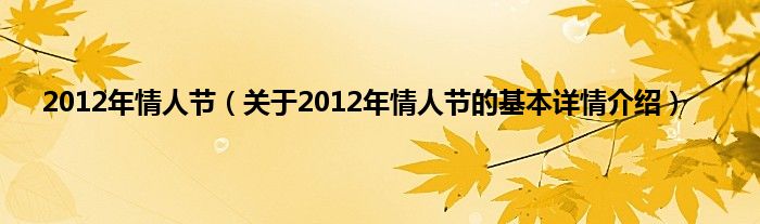 本文关于2012年情人节的基本详情介绍就讲解完毕,希望对大家有所帮助。