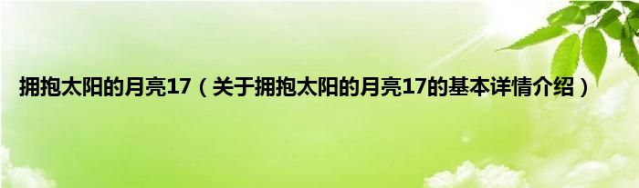 本文关于拥抱太阳的月亮17的基本详情介绍就讲解完毕,希望对大家有所帮助。