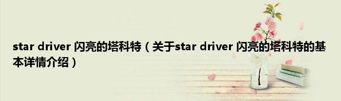 本文关于star driver 闪亮的塔科特的基本详情介绍就讲解完毕,希望对大家有所帮助。