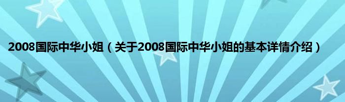 2008国际中华小姐(关于2008国际中华小姐的基本详情介绍)