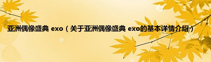 本文关于亚洲偶像盛典 exo的基本详情介绍就讲解完毕,希望对大家有所帮助。