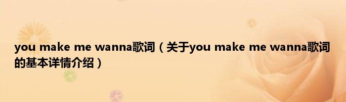 本文关于you make me wanna歌词的基本详情介绍就讲解完毕,希望对大家有所帮助。