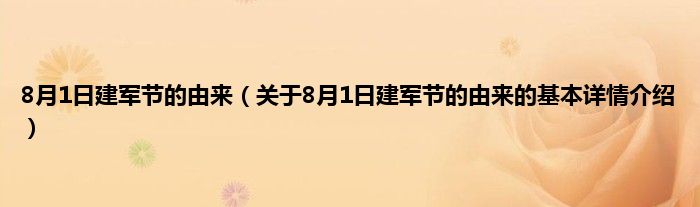 本文关于8月1日建军节的由来的基本详情介绍就讲解完毕,希望对大家有所帮助。