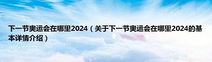 下一节奥运会在哪里2024(关于下一节奥运会在哪里2024的基本详情介绍)