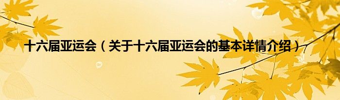 本文关于十六届亚运会的基本详情介绍就讲解完毕,希望对大家有所帮助。