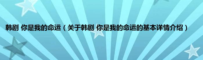 本文关于韩剧 你是我的命运的基本详情介绍就讲解完毕,希望对大家有所帮助。