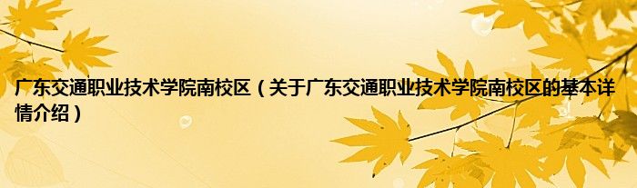 本文关于广东交通职业技术学院南校区的基本详情介绍就讲解完毕,希望对大家有所帮助。
