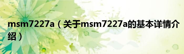 msm7227a(关于msm7227a的基本详情介绍)