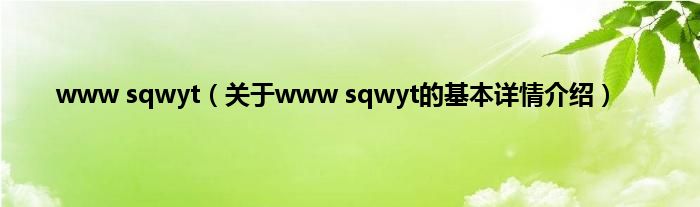 本文关于www sqwyt的基本详情介绍就讲解完毕,希望对大家有所帮助。