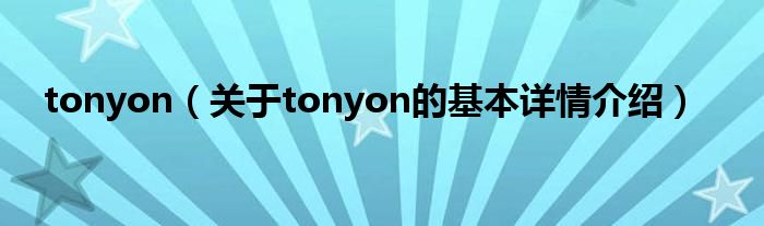 本文关于tonyon的基本详情介绍就讲解完毕,希望对大家有所帮助。