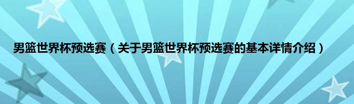 本文关于男篮世界杯预选赛的基本详情介绍就讲解完毕,希望对大家有所帮助。