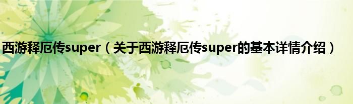 本文关于西游释厄传super的基本详情介绍就讲解完毕,希望对大家有所帮助。