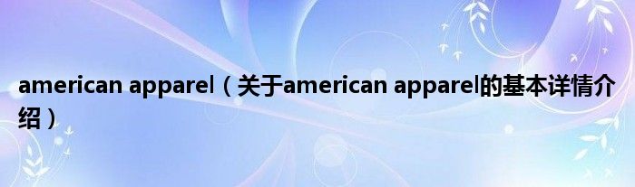 本文关于american apparel的基本详情介绍就讲解完毕,希望对大家有所帮助。