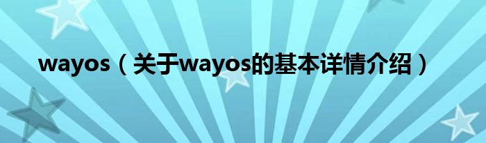 本文关于wayos的基本详情介绍就讲解完毕,希望对大家有所帮助。
