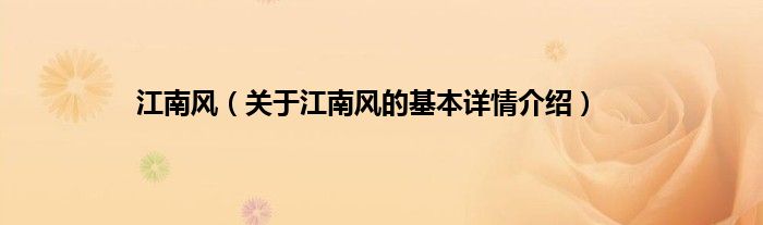 本文关于江南风的基本详情介绍就讲解完毕,希望对大家有所帮助。