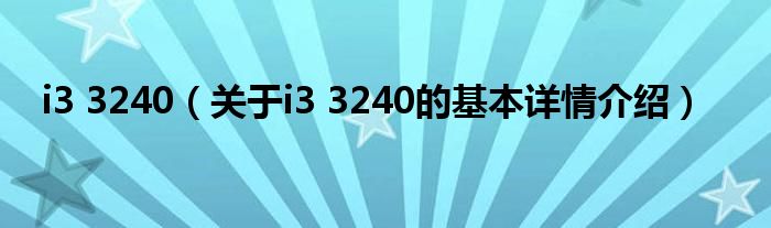 本文关于i3 3240的基本详情介绍就讲解完毕,希望对大家有所帮助。