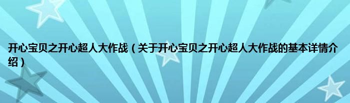 开心宝贝之开心超人大作战(关于开心宝贝之开心超人大作战的基本详情介绍)