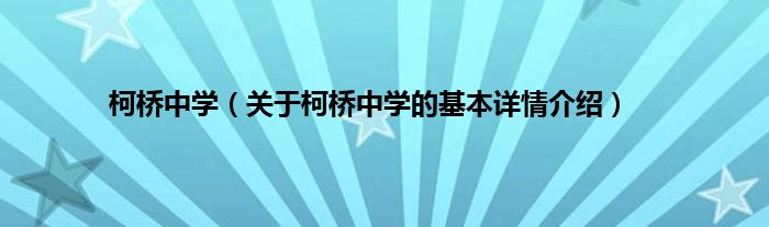 本文关于柯桥中学的基本详情介绍就讲解完毕,希望对大家有所帮助。