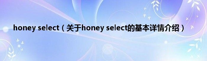 本文关于honey select的基本详情介绍就讲解完毕,希望对大家有所帮助。
